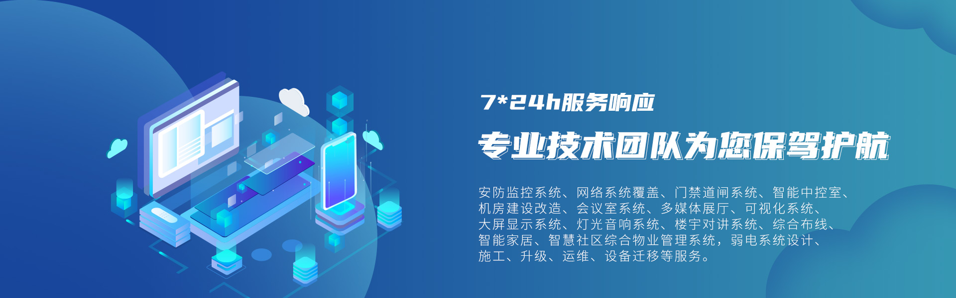 服務內容:數字監控系統、周界報警系統、道閘門禁系統、網絡系統覆蓋、大屏顯示系統、燈光音響系統、樓宇對講系統、智能中控室、機房建設、動環監控、會議室系統、金融保險系統、智能多媒體展廳、可視化系統、綜合布線、智能家居、智慧社區綜合物業管理系統,弱電系統設計、施工、改造、運維、系統遷移等服務,同時公司為所有承建項目建立維護檔案,公司擁有專業的維護團隊,推行快速響應機制,確保在第一時間解決客戶的后顧之憂。